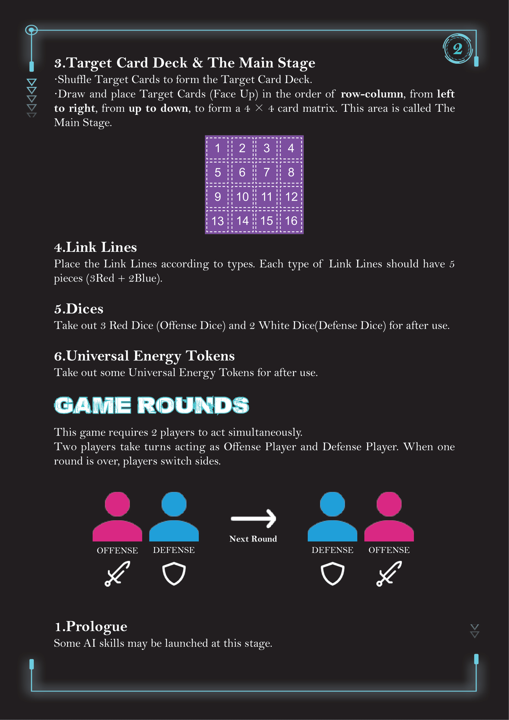 Starting from the offensive player, both sides take turns using their connection lines to connect the 'Target Cards' on the 'Main Stage'.