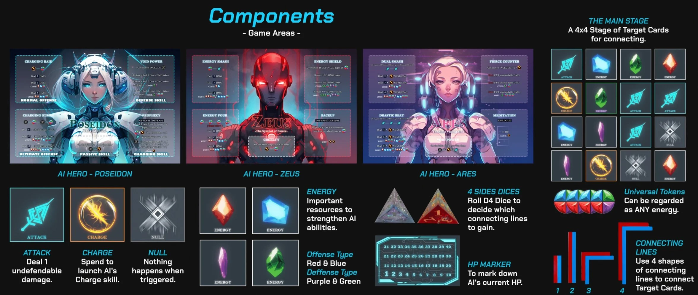 Along with the booming development of Artificial Intelligence, they are gradually becoming the primary role on the battlefield. You will act as the commander, leading your AI corps to victory. Making 'Connecting' the core mechanic, The Blueprint Warfare is designed to be one of the most unique tabletop game in the world. Players may use different shapes of 'Connection Lines' to connect 'Targets' together to snatch energy resources that are vital to strengthen AI abilities, or organize a deadly attack... Opponents could also do 'Defensive Connection' to disturb the offense. The final goal for players is quite simple ——CRUSH THEIR ENEMIES !